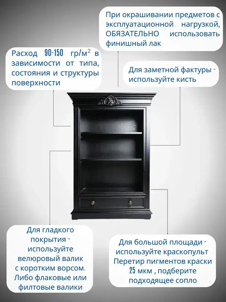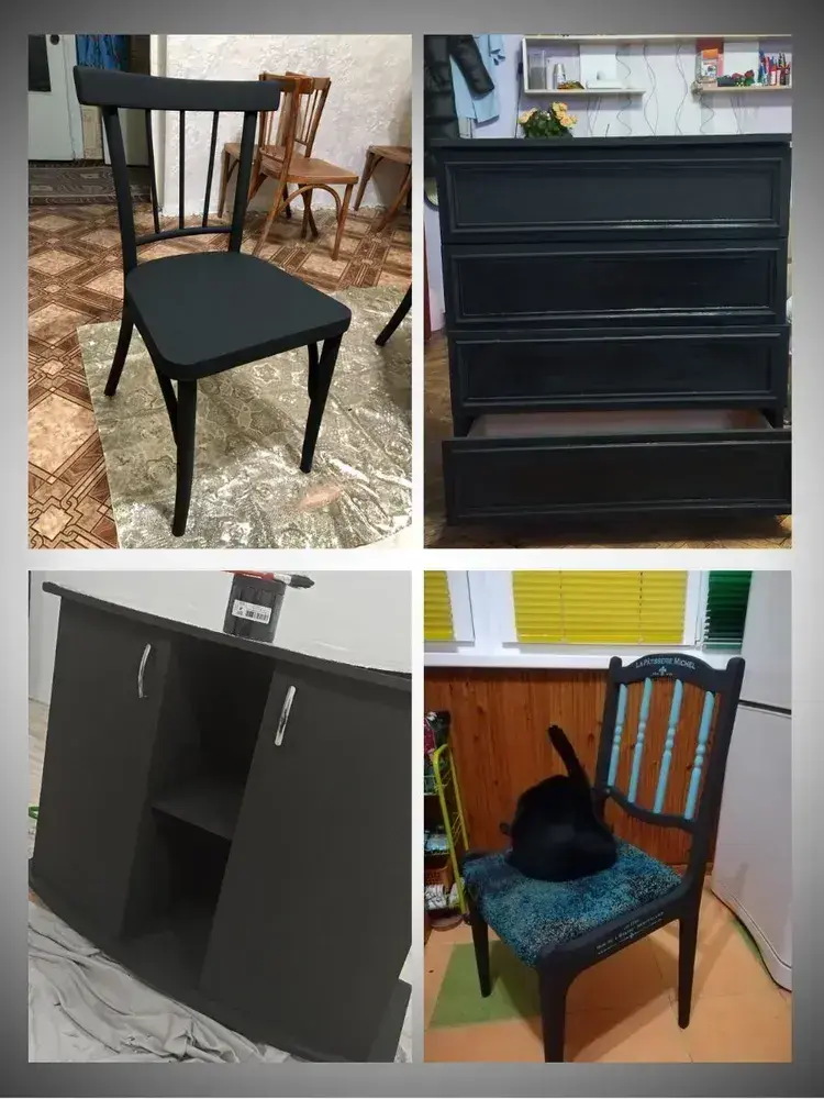 Краска для мебели и декора меловая РЕМАКОР без запаха, матовая быстросохнущая, для кухни дверей дерева, для окраски обоев стен и потолков, цвет Чёрный графит, 800 гр.