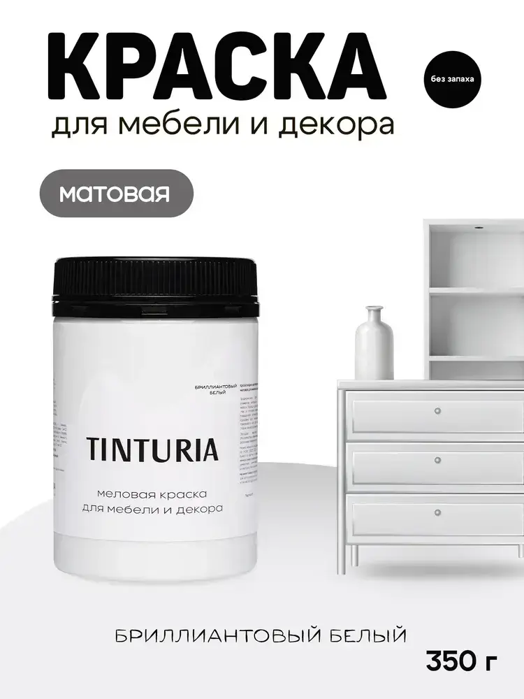 Краска для мебели и декора меловая TINTURIA матовая без запаха бриллиантовый белый 0,35 кг
