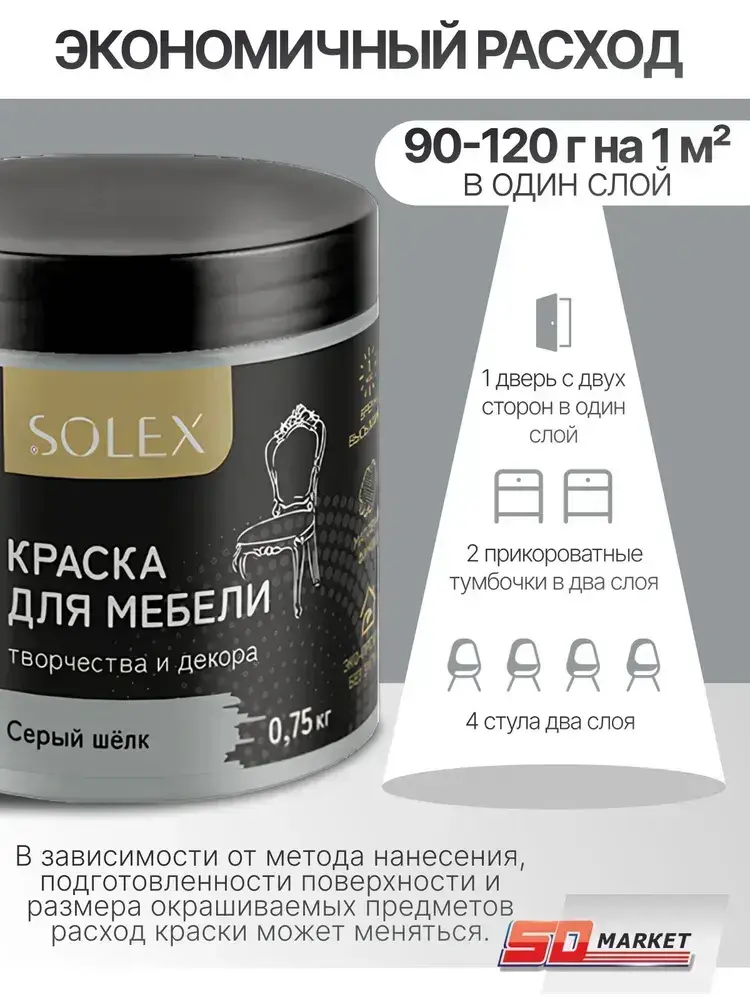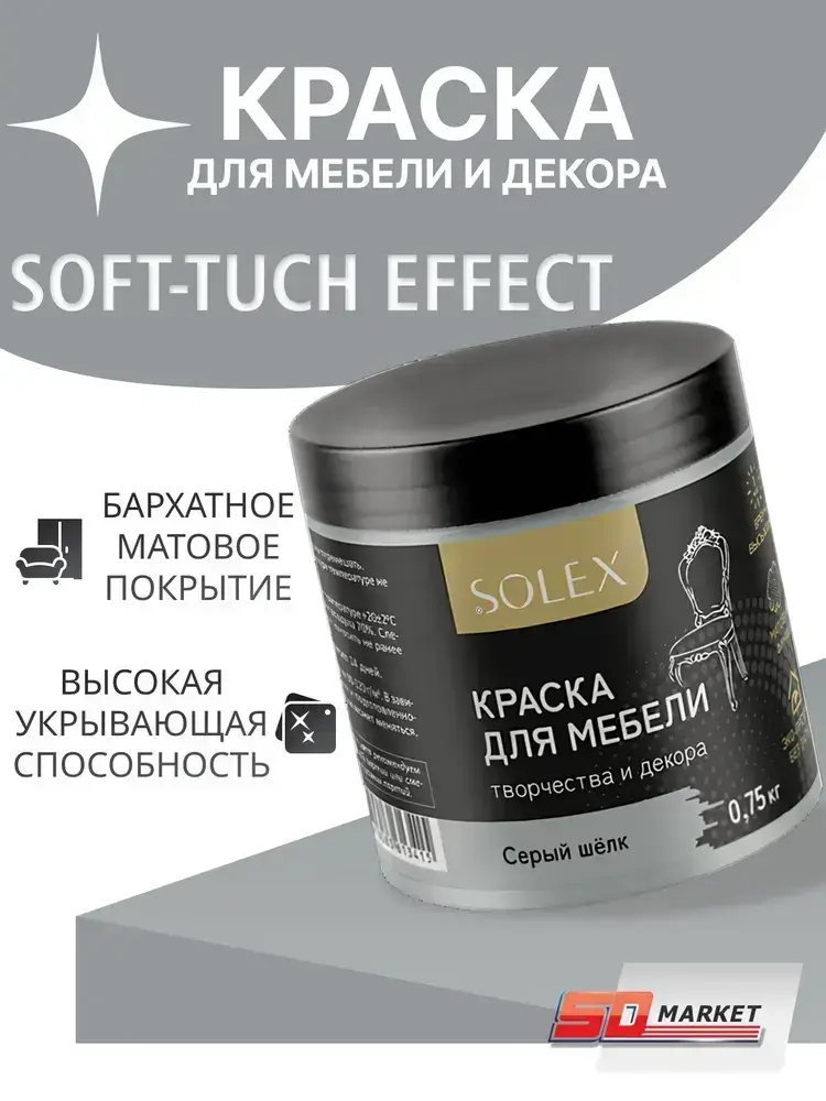 Краска для мебели и декора серый шелк 750 гр , SOLEX
