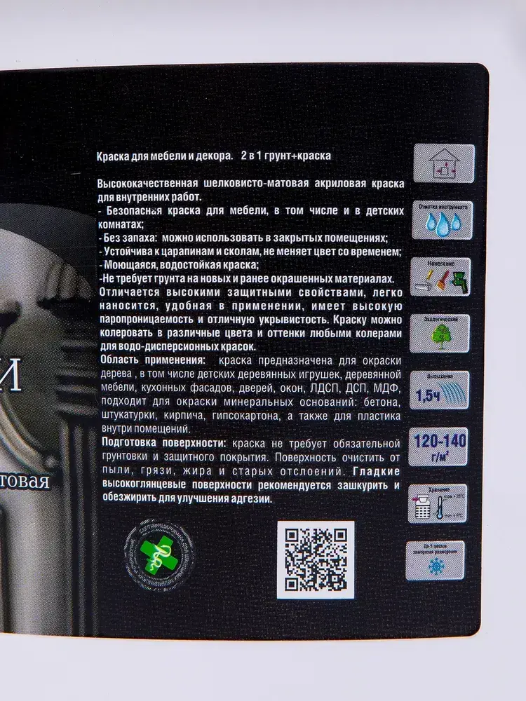 Краска для мебели и декора шелковисто-матовая, акриловая без запаха, быстросохнущая, краска по дереву, дверей пластика кухонных фасадов, детской 0,65 кг, белая