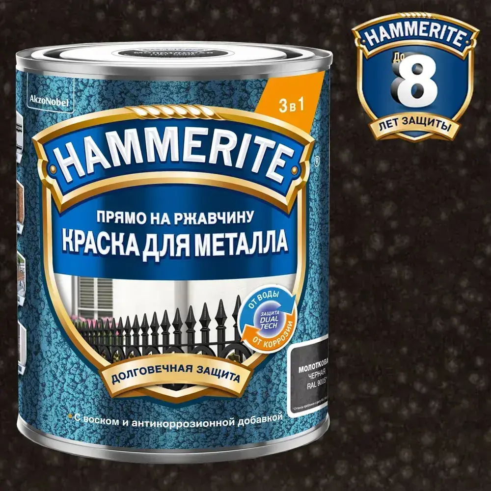 Краска для металла / Грунт-эмаль по ржавчине 3в1 алкидная Hammerite молотковая черный 2,5 л