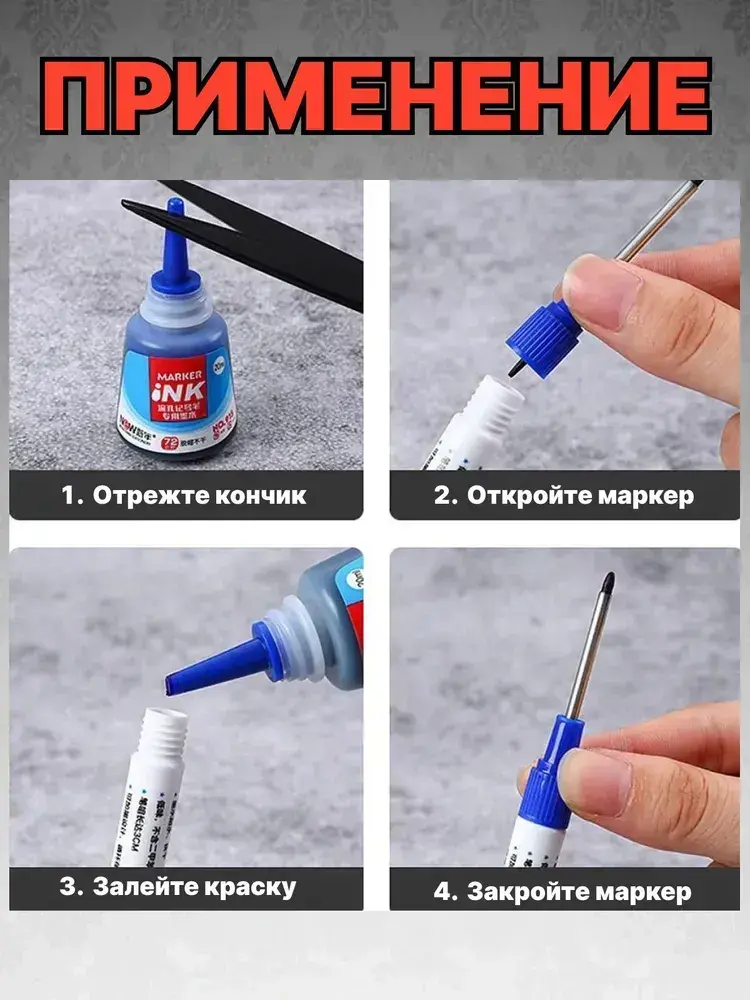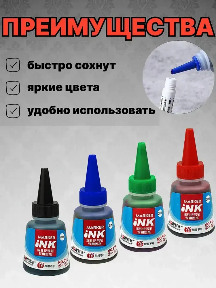 Краска для перманентных спиртовых маркеров, чернила для маркеров разноцветные
