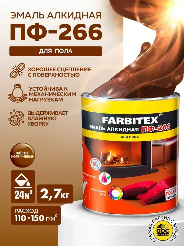 Краска для пола, эмаль алкидная ПФ-266 FARBITEX (Артикул: 4300001616, Цвет: Желто-коричневый, Фасовка 2,7 кг)