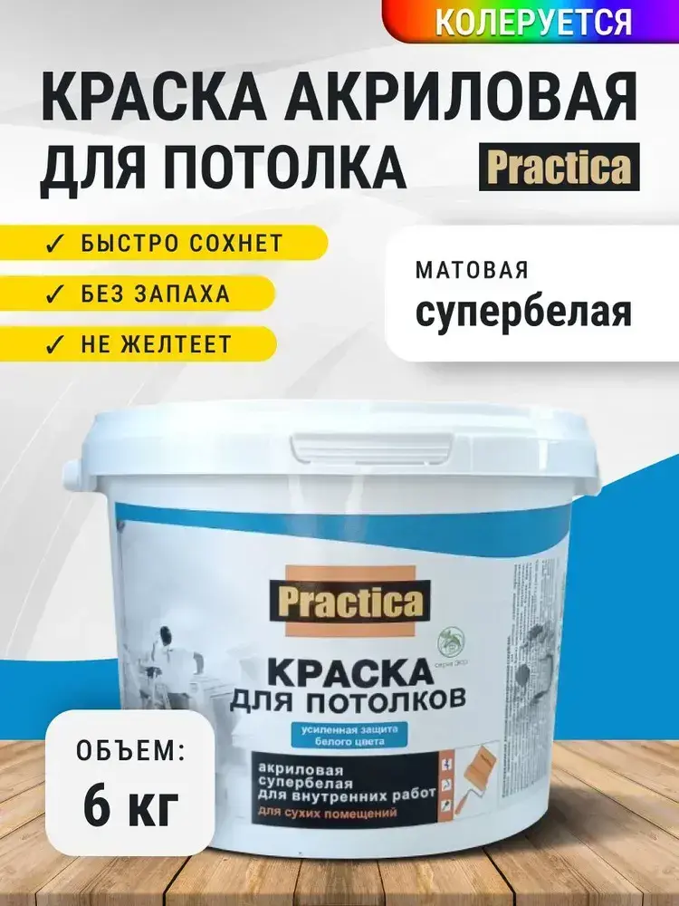 Краска ДЛЯ ПОТОЛКА 6кг СУПЕРБЕЛАЯ PRACTICA
