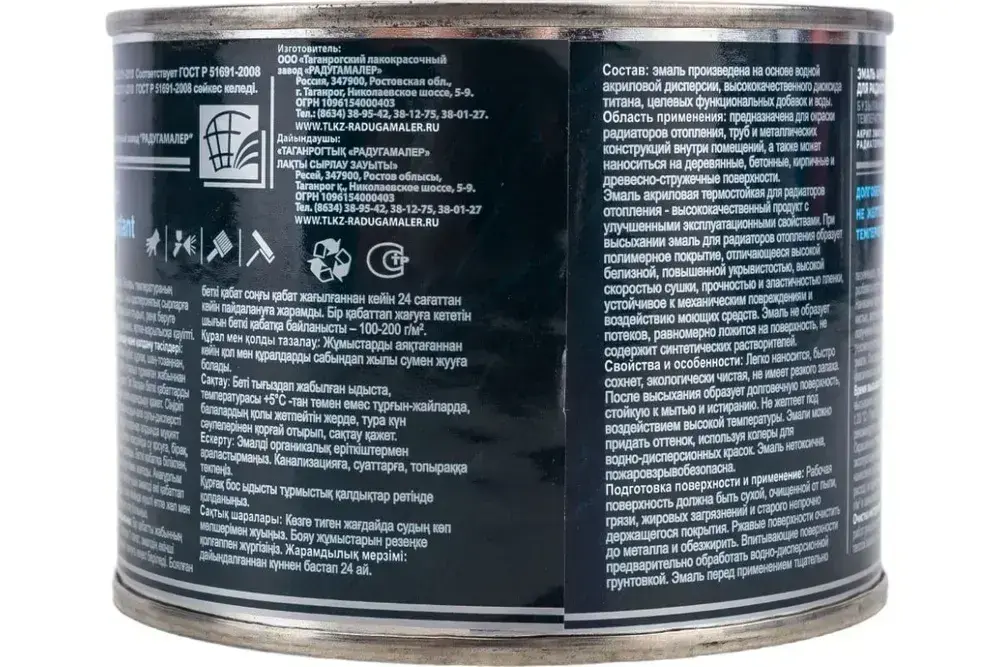 Краска для радиаторов отопления, батарей и труб термостойкая, акриловая, без запаха, белая 0,4 кг РАДУГАМАЛЕР / быстросохнущая, полуглянцевая, эмаль для радиаторов и труб