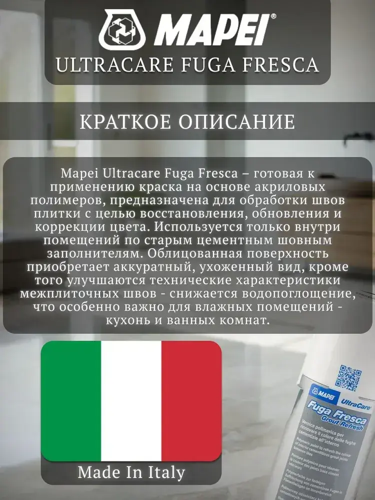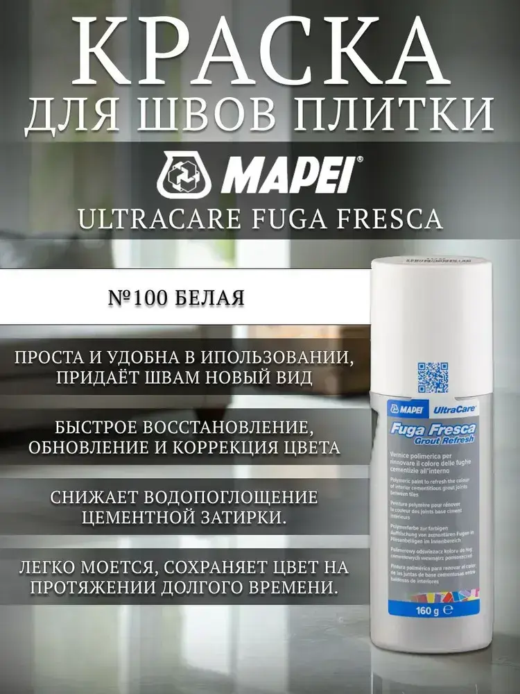 Краска для швов плитки Mapei Ultracare Fuga Fresca № 100 Белый 160 г