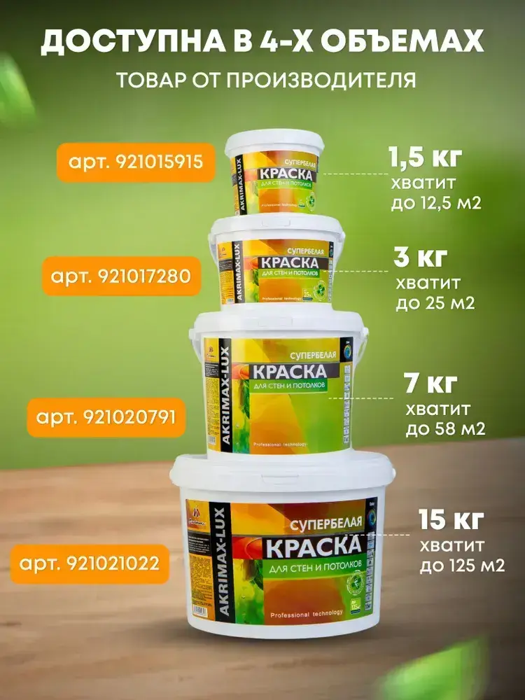 Краска для стен и потолков 15 кг супербелая AKRIMAX LUX акриловая, быстросохнущая, для внутренних работ, матовое покрытие, белый
