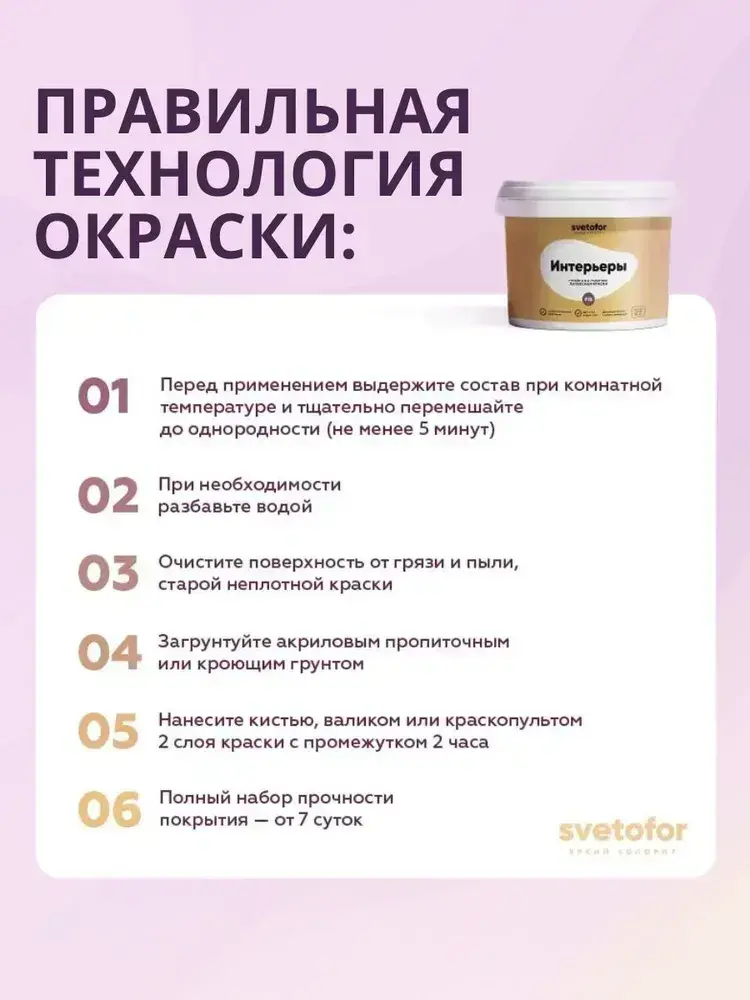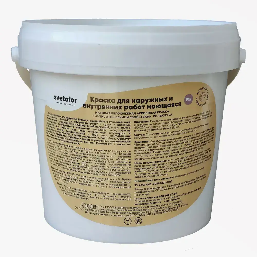 Краска для стен и потолков моющаяся Svetofor F15 Белая 7 кг, латексная, матовая, акриловая, без запаха растворителей