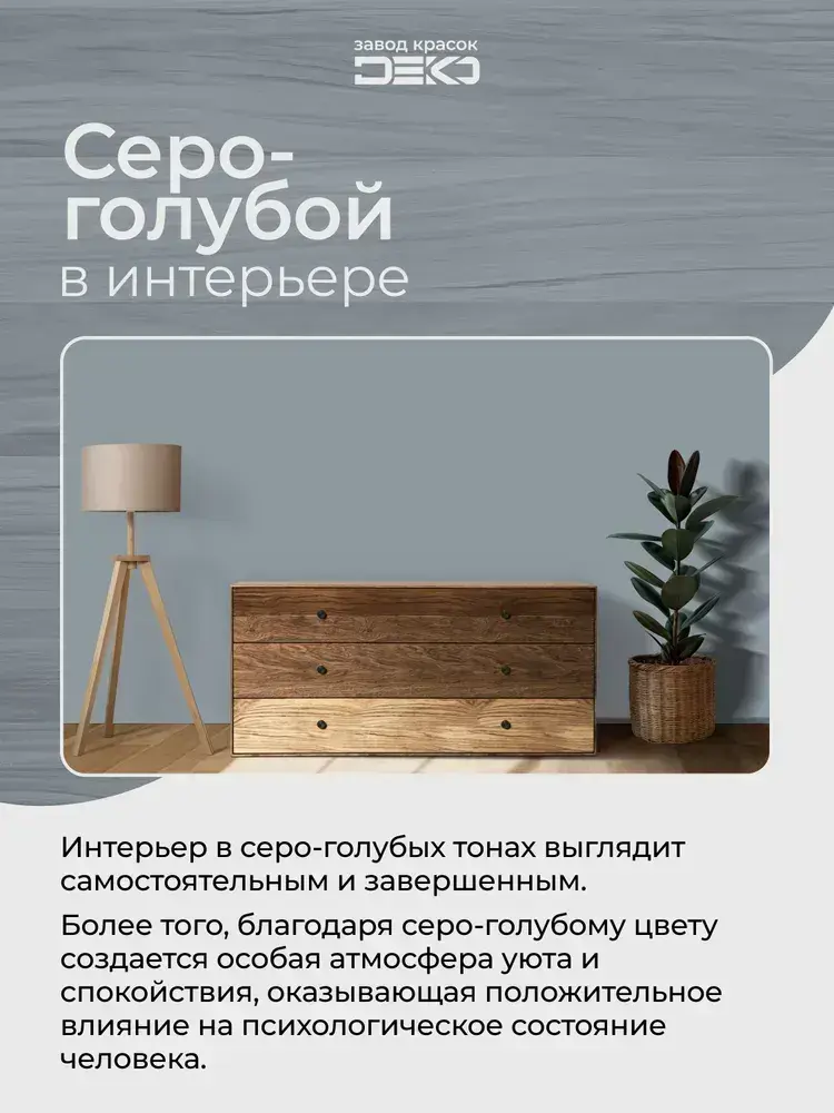 Краска для стен моющаяся DEKO ART интерьерная без запаха, серо-голубой 3кг