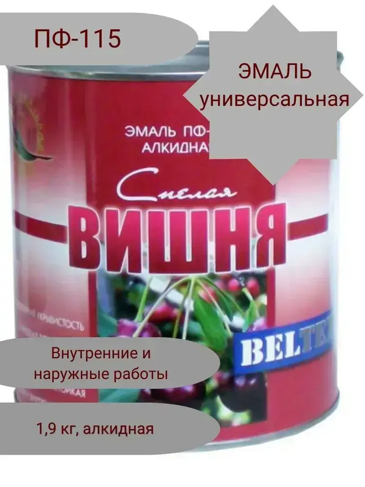 Краска Эмаль красная ПФ-115 Белтекс /спелая вишня/ 1.9 кг по дереву, металлу, кирпичу и бетону, для наружных и внутренних работ