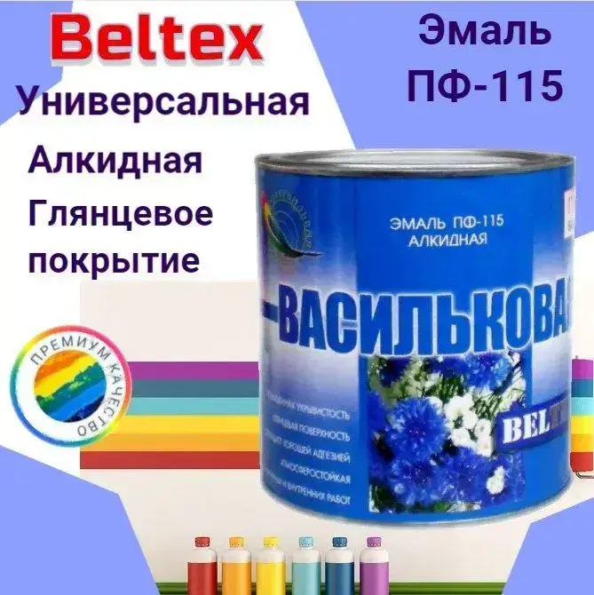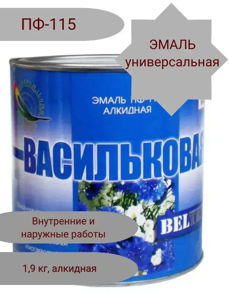 Краска Эмаль синяя ПФ-115 Белтекс /васильковая/ 1.9 кг по дереву, металлу, кирпичу и бетону, для наружных и внутренних работ
