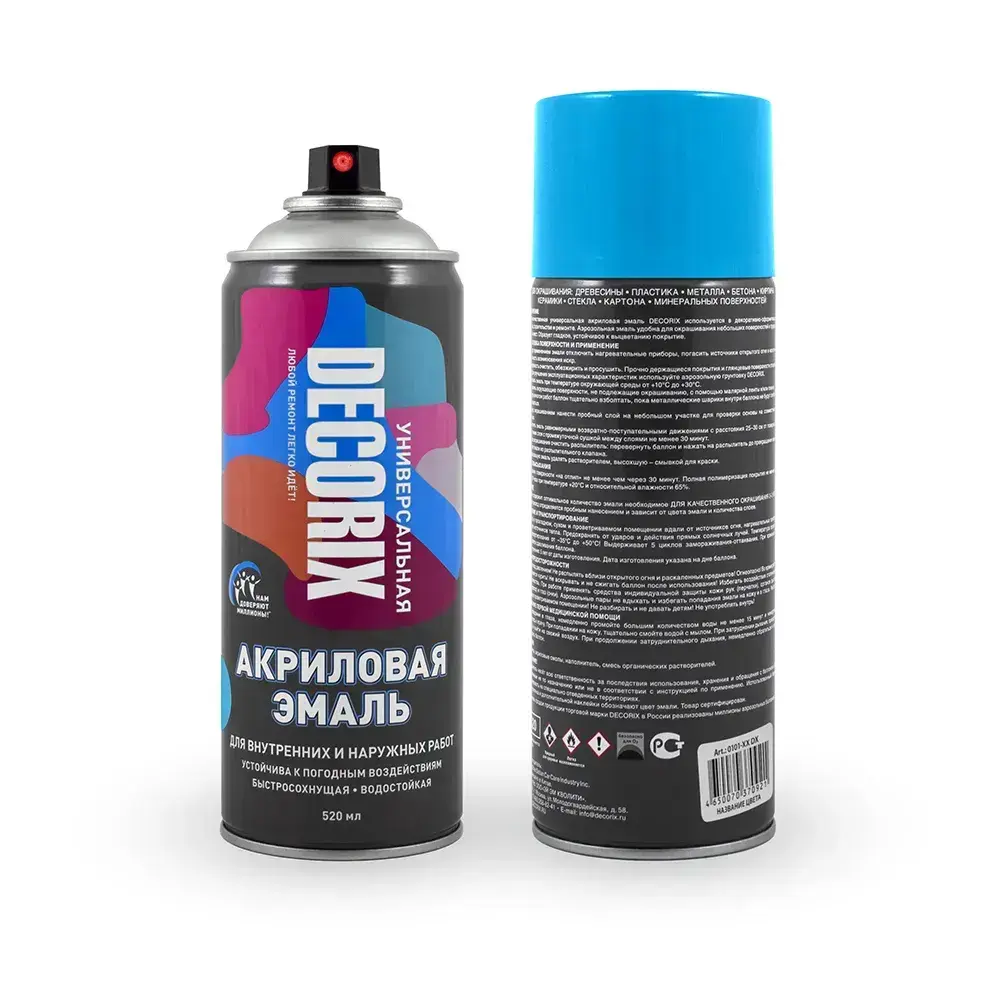 Краска голубая в баллончике глянцевая акриловая DECORIX - "Светло-голубая" эмаль аэрозольная для любых поверхностей 520 мл