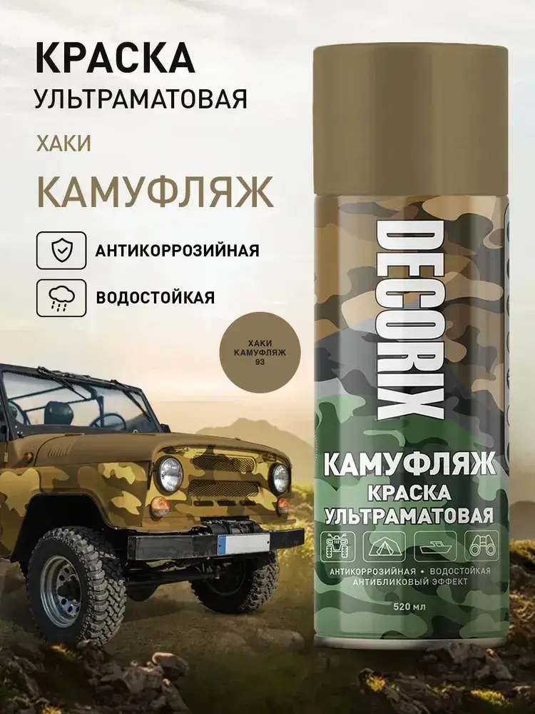 Краска хаки камуфляжная аэрозольная матовая DECORIX - светопоглощающая краска цвета Хаки камуфляж в баллончике 520 мл