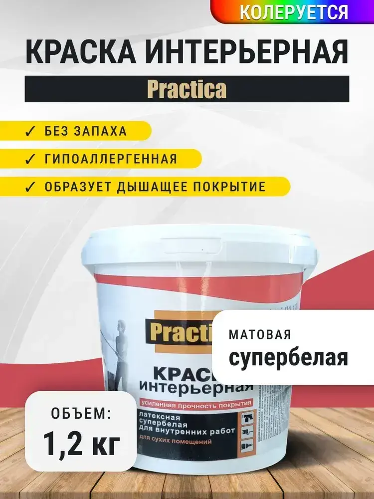 Краска ИНТЕРЬЕРНАЯ 1,2кг СУПЕРБЕЛАЯ PRACTICA