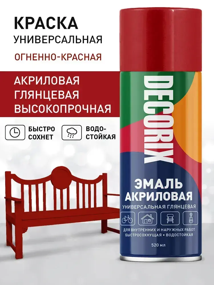 Краска красная в баллончике глянцевая акриловая DECORIX - Огненно-красная эмаль аэрозольная для любых поверхностей 520 мл