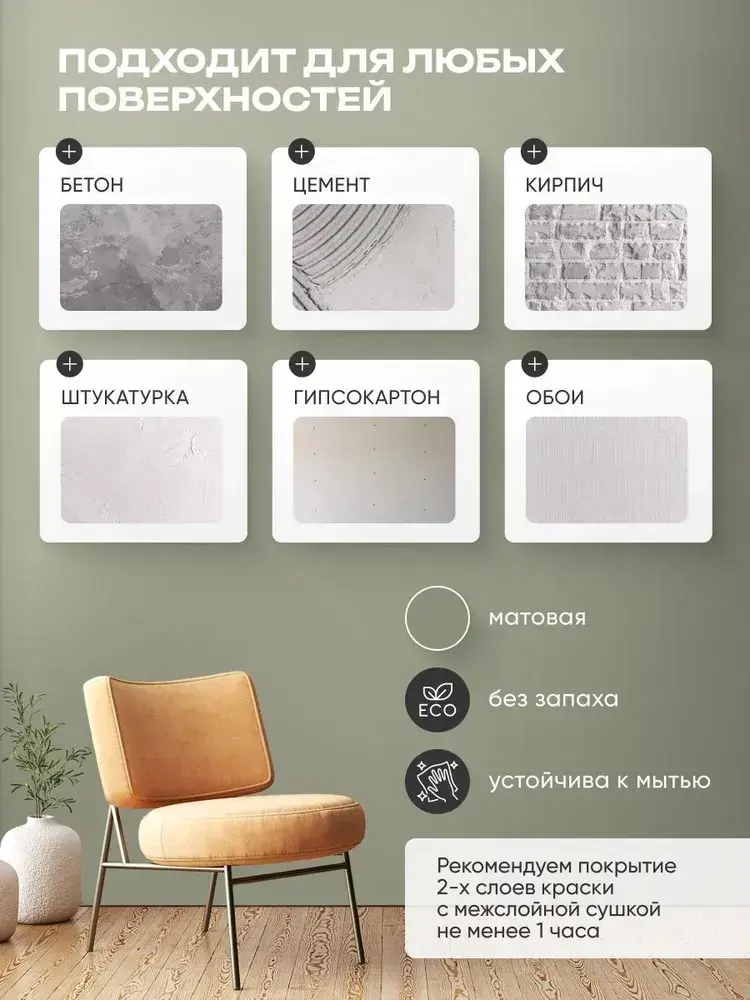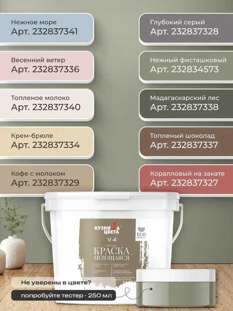 Краска моющаяся для стен нежный фисташковый 2,7л