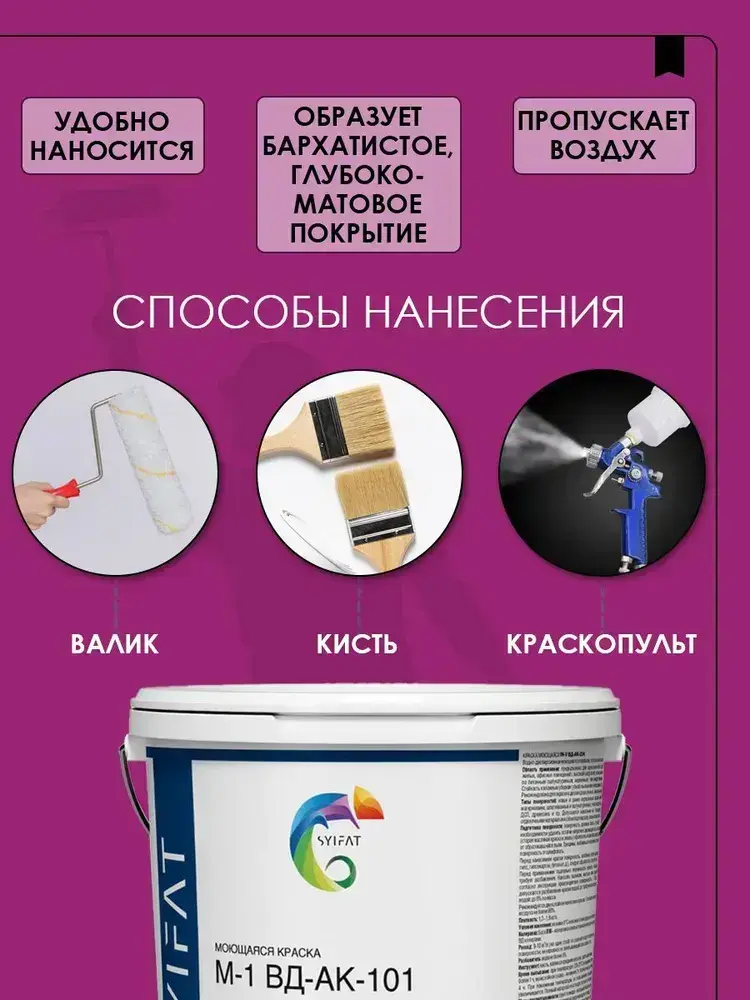Краска моющаяся SYIFAT Фиолетовая для ПВЗ 2,7 л. RAL4006 Цветная акриловая интерьерная Для стен и потолков Для обоев Без запаха Быстросохнущая Матовая