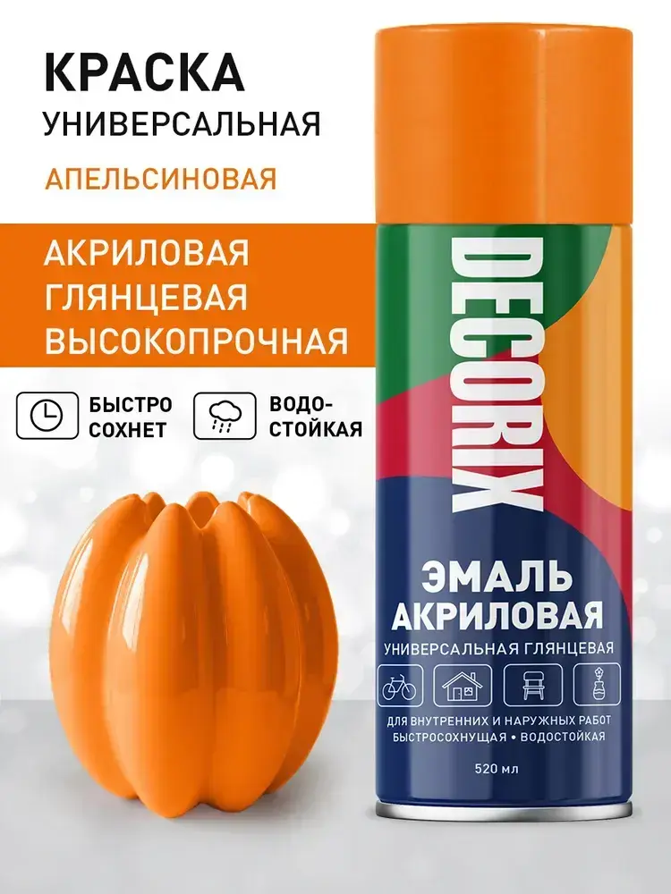 Краска оранжевая в баллончике глянцевая акриловая DECORIX - "Апельсиновая" эмаль аэрозольная для любых поверхностей 520 мл