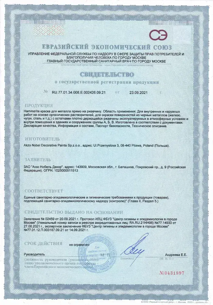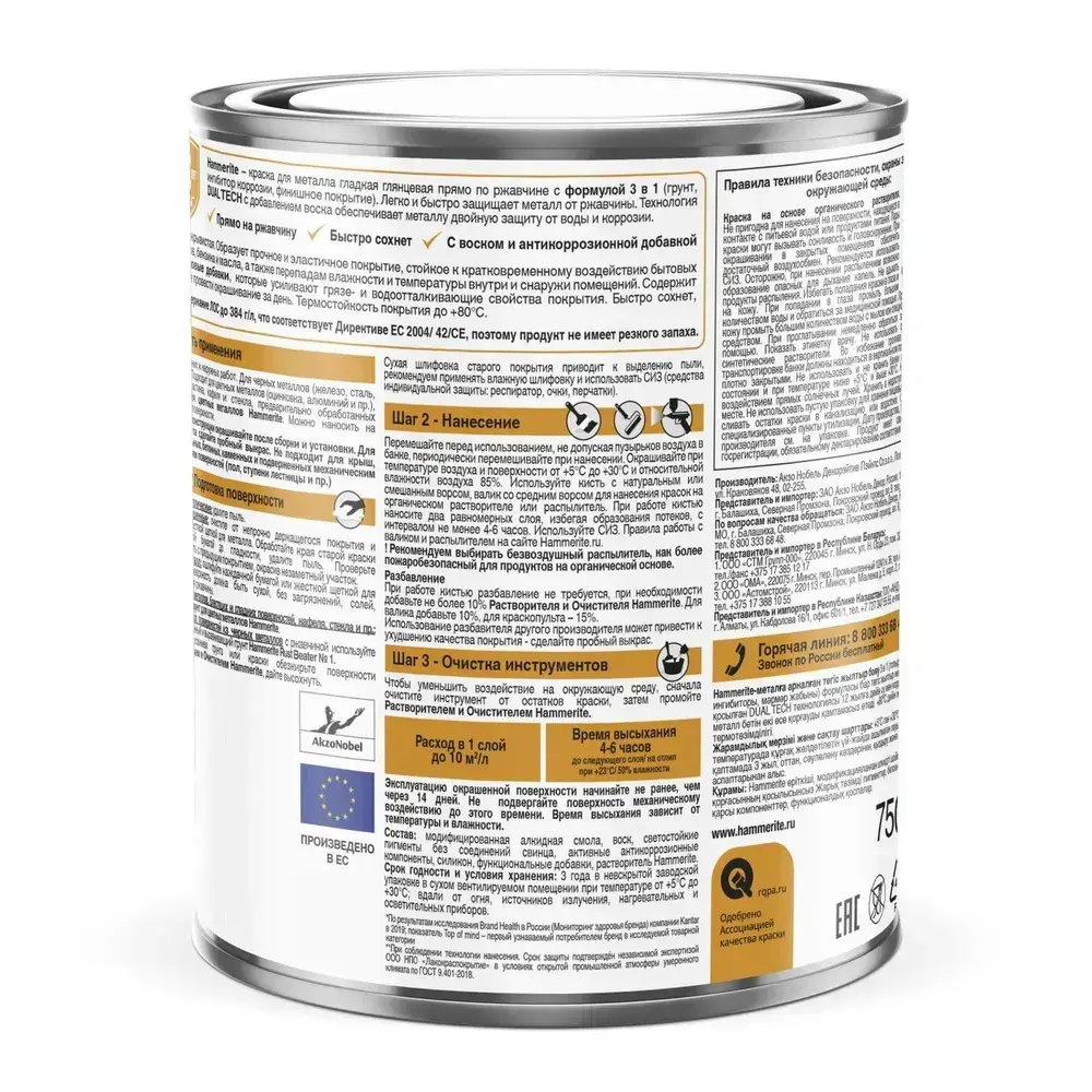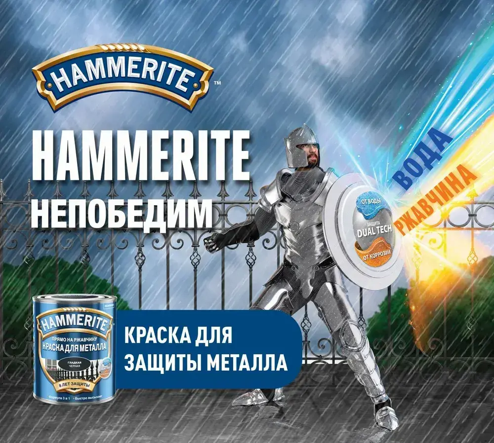 Краска по металлу Hammerite Польша гладкая, глянцевая (0,75л) черный (RAL 9005)