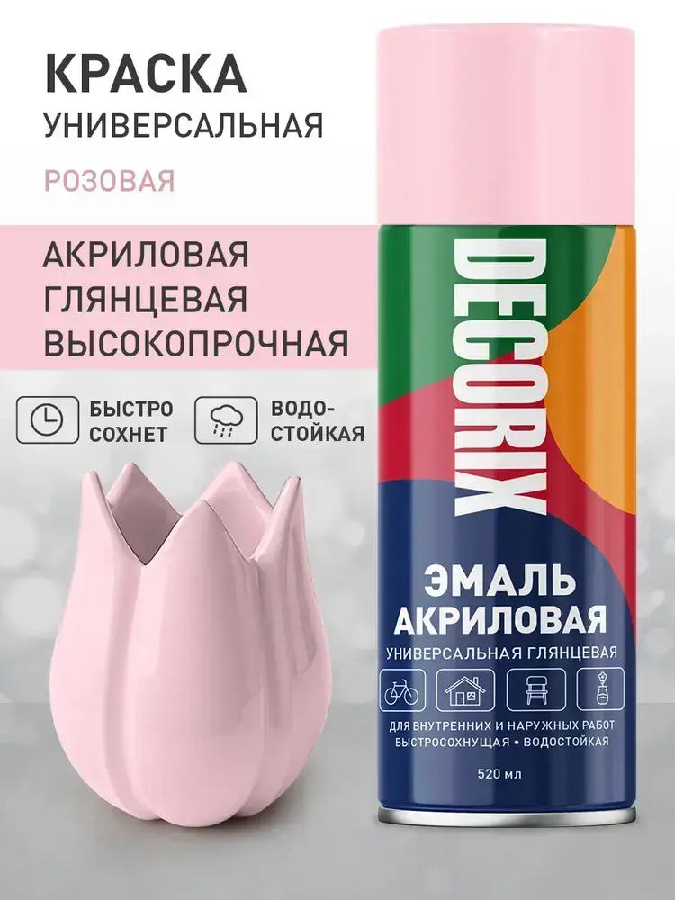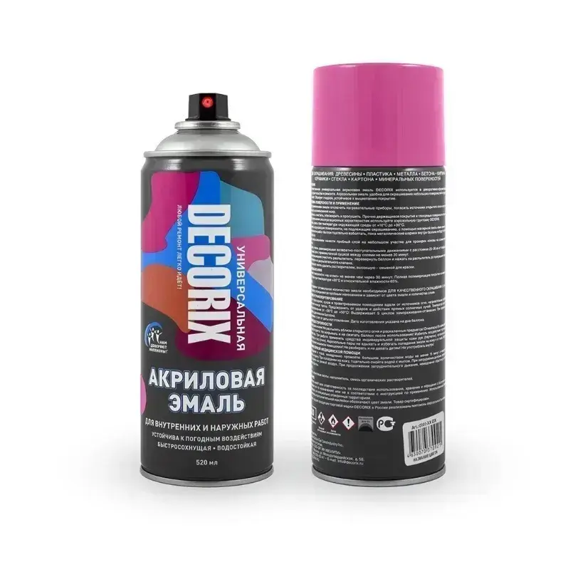 Краска розовая в баллончике глянцевая акриловая DECORIX - эмаль аэрозольная для любых поверхностей 520 мл