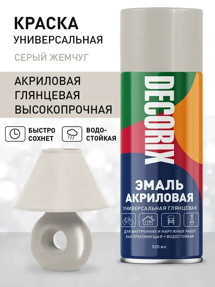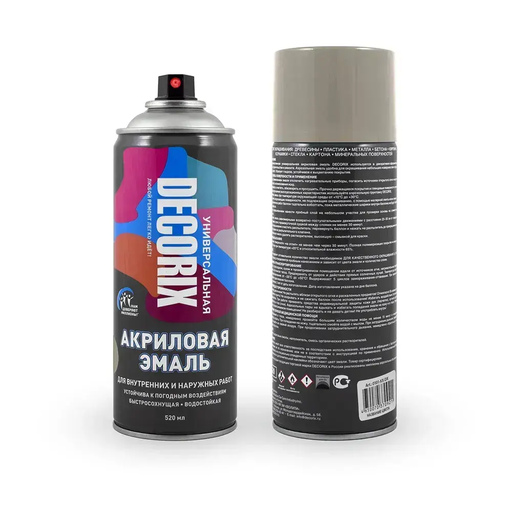 Краска серая в баллончике глянцевая акриловая DECORIX - "Серый жемчуг" эмаль аэрозольная для любых поверхностей 520 мл