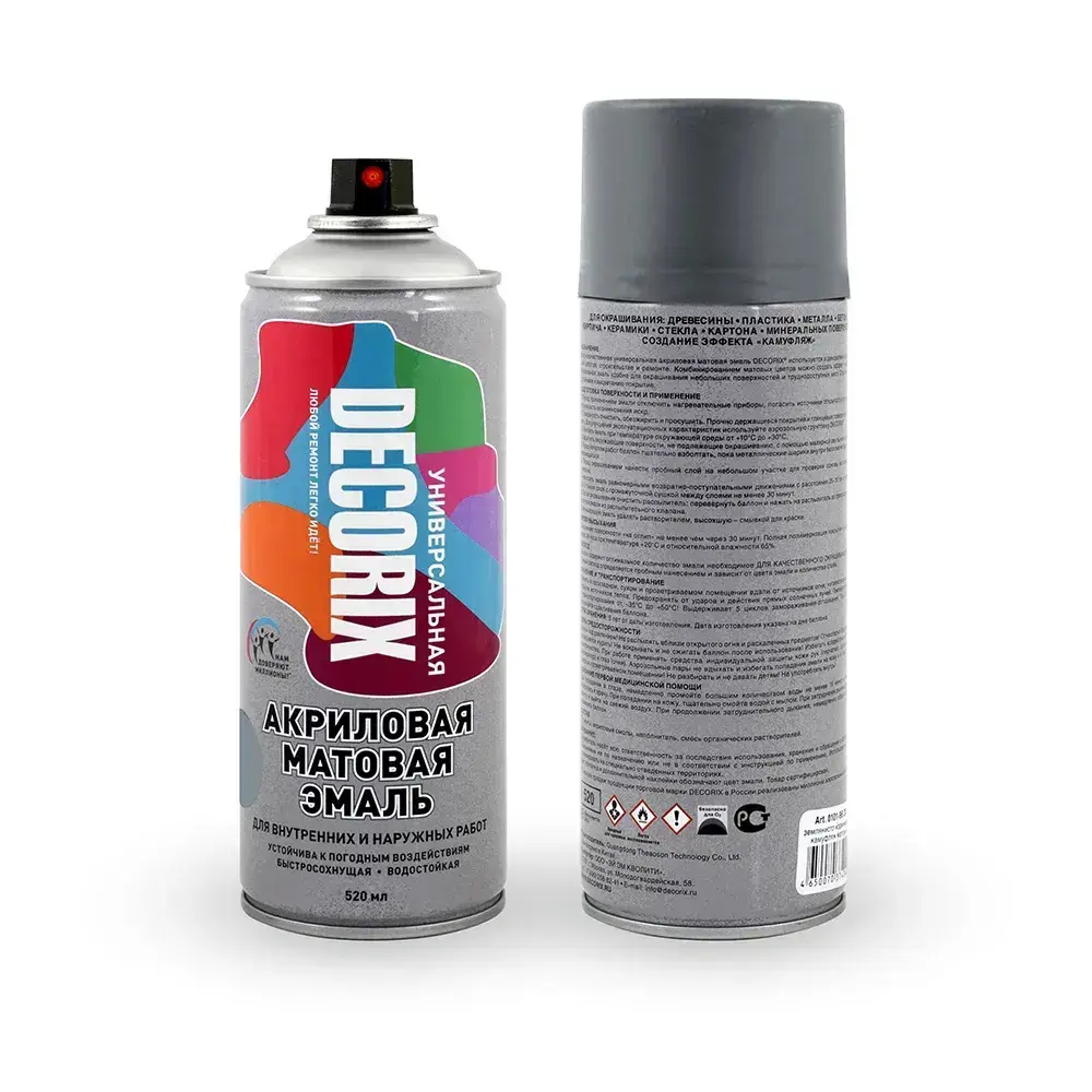 Краска серая в баллончике матовая акриловая DECORIX - эмаль аэрозольная для любых поверхностей 520 мл