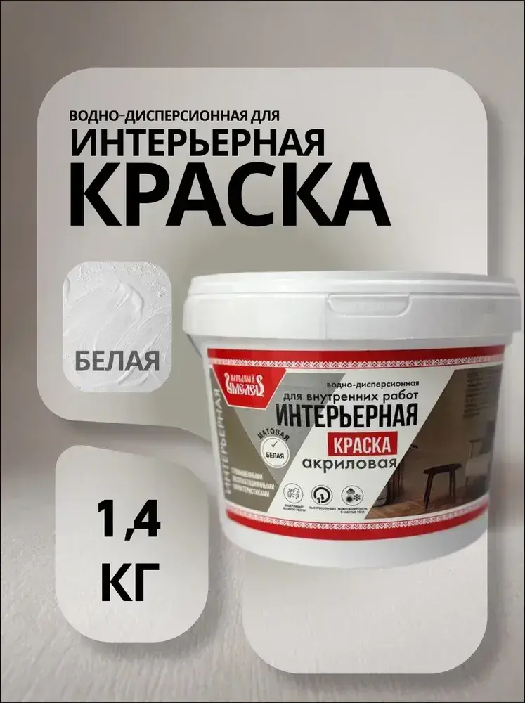 Краска водно-дисперсионная акриловая для внутренних работ "Народный умелец", матовая, белая 1,4кг