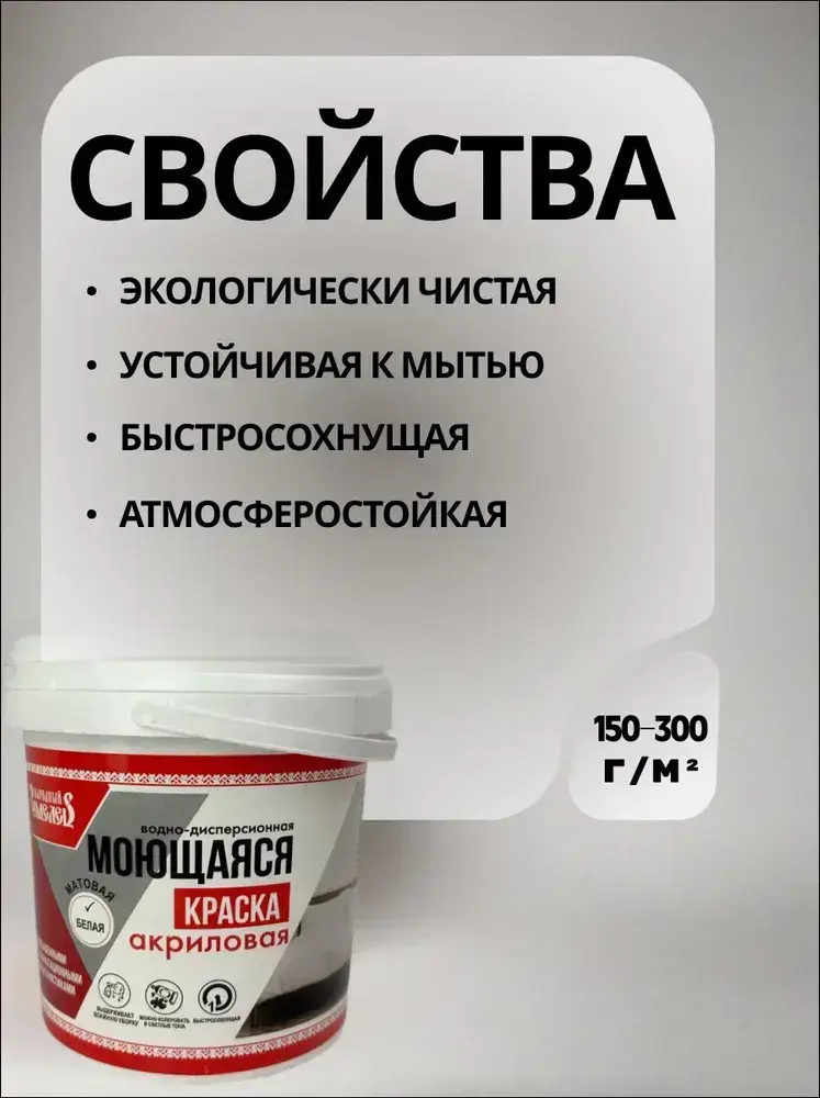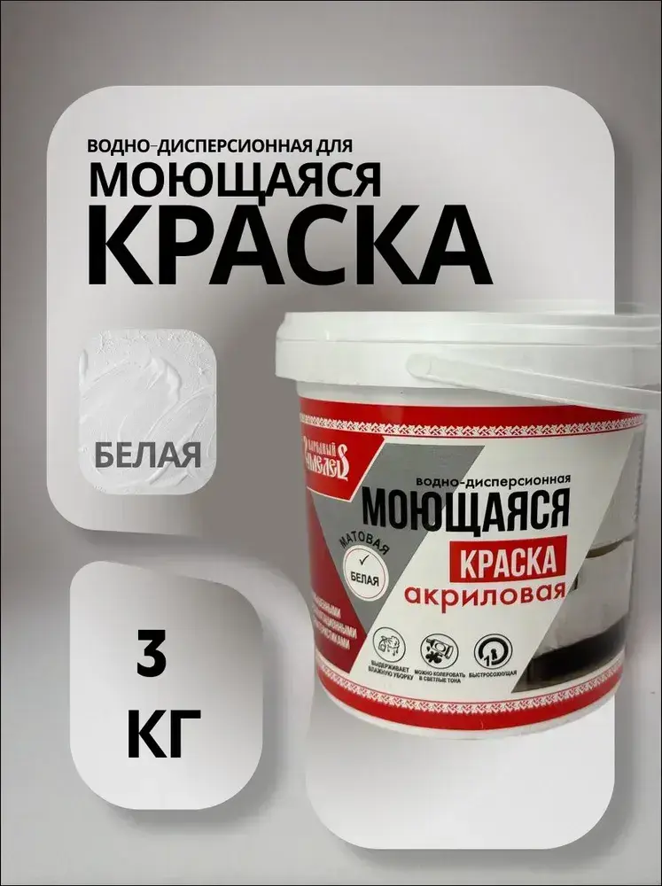 Краска водно-дисперсионная акриловая моющаяся "Народный умелец", матовая, белая 3кг