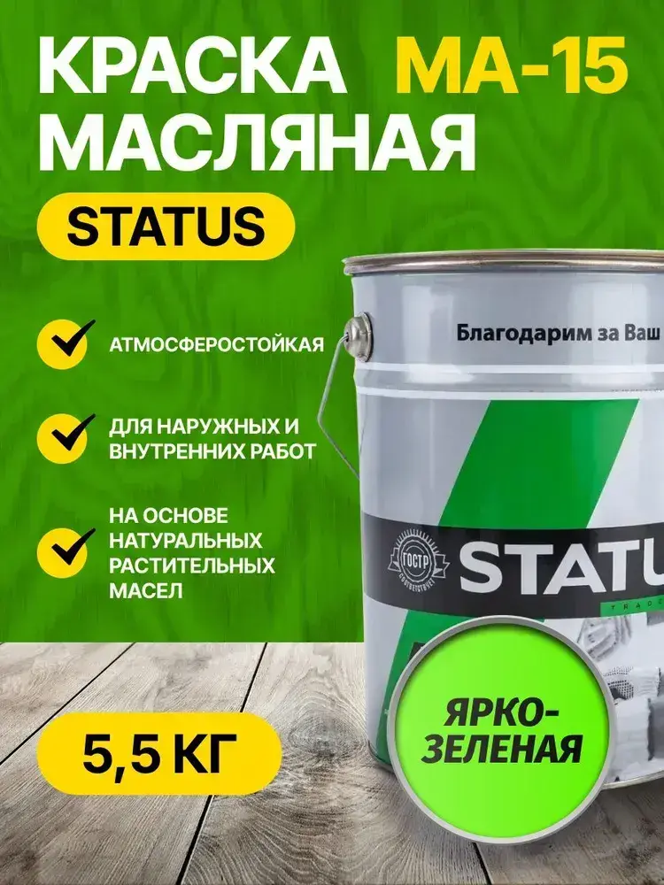 Краски масляные ярко-зеленая МА-15 STATUS 5,5 кг