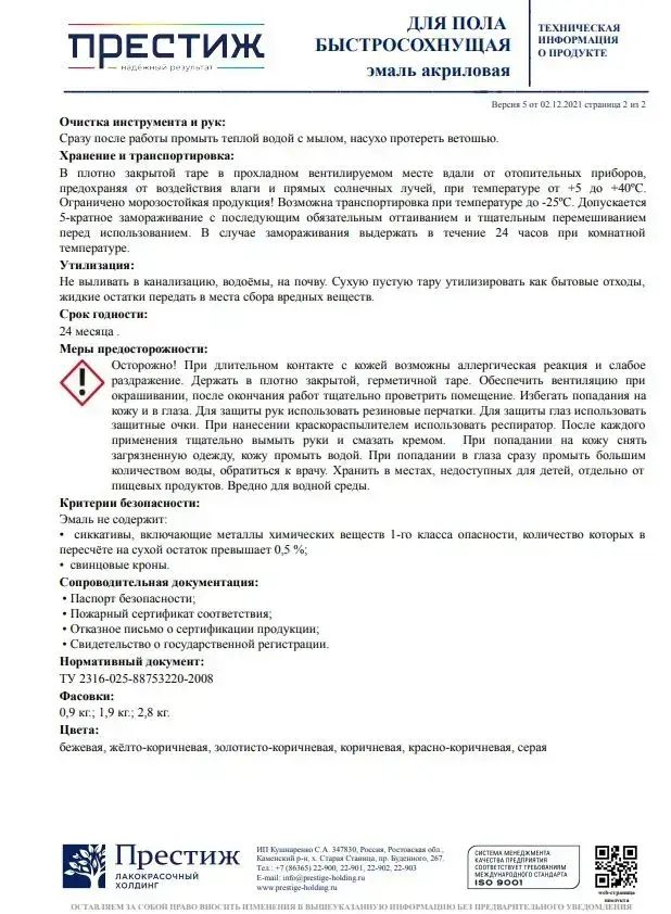 КРАСНО-КОРИЧНЕВАЯ краска для пола ПРЕСТИЖ 0,9 кг. Акриловая, износостойкая эмаль для пола БЕЗ запаха и растворителей. Мастер
