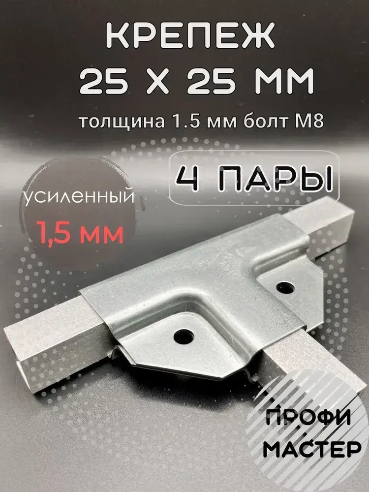 Крепеж для теплицы 25 х 25 мм Т-образный для труб краб-система, подходит для стеллажа и теплиц, 4 пары - толщина металла 1.5мм