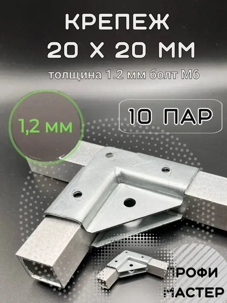 Крепеж для теплицы краб-система Г-образный для труб 20х20, подходит для стеллажа и теплиц, 10 пар - толщина металла 1.2мм