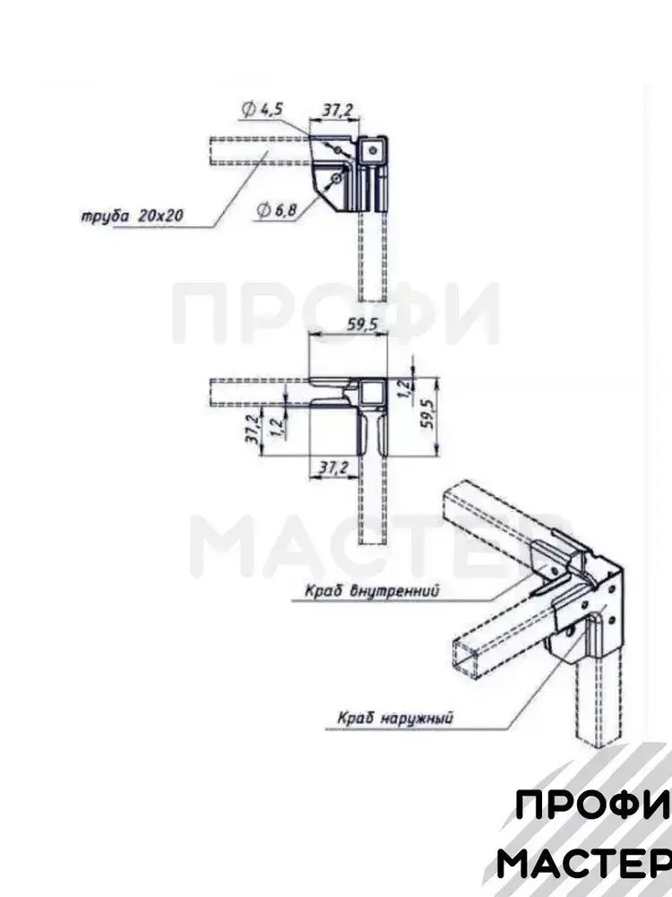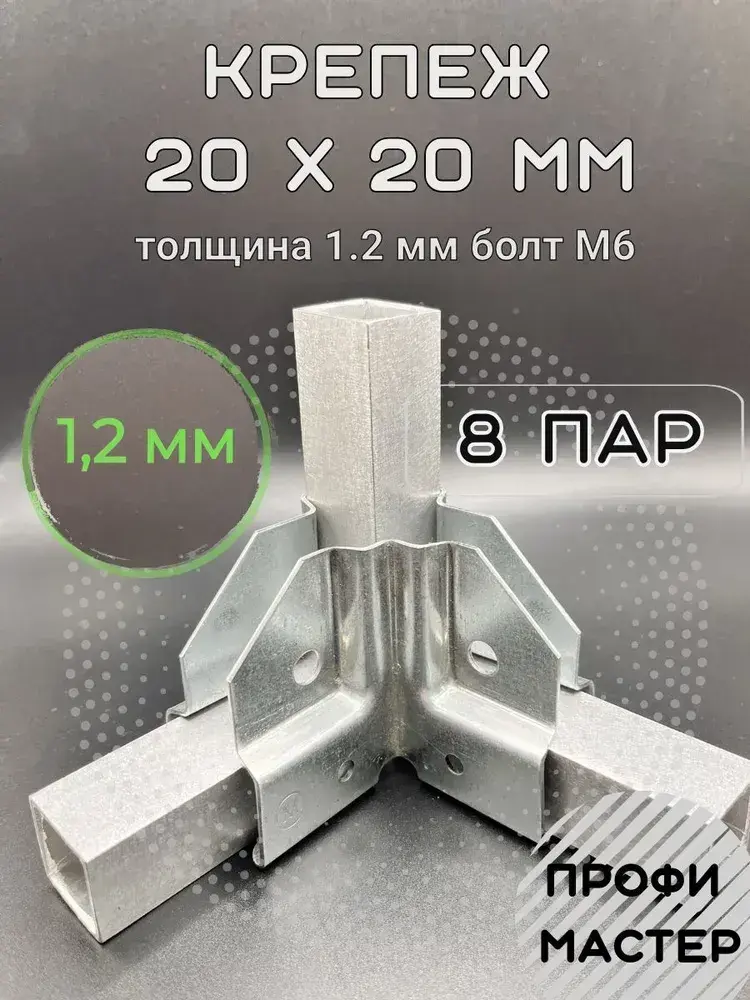Крепеж теплиц угловой для квадратных труб 20х20мм 3х-сторонний, подходит для теплицы и стеллажа, 8 пар-толщина металла 1.2мм