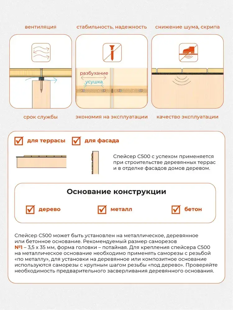 Крепежные элементы/прокладки для вентиляции древесины Гвозdeck (Гвоздек) Спейсер 500