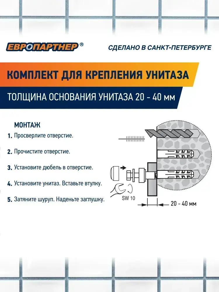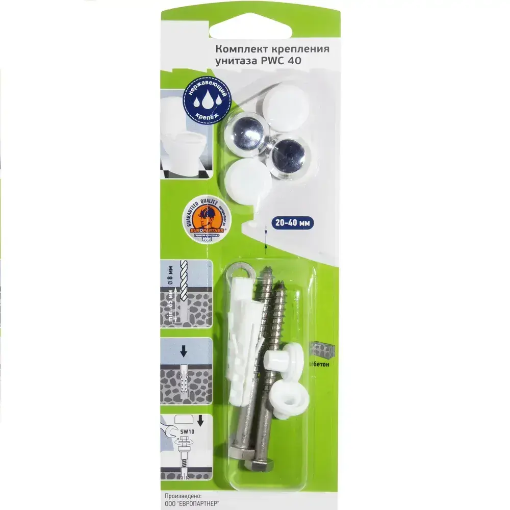 Крепление для унитаза основание 20-40 мм с нержавеющим шурупом Европартнер (2 шт.)