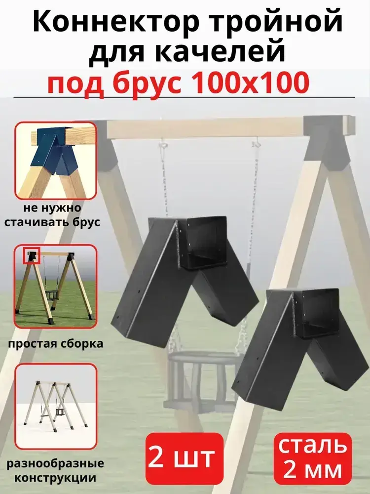 Кронштейн-коннектор тройной для качелей угол 60 градусов проходной под брус 100х100 мм, 2 шт