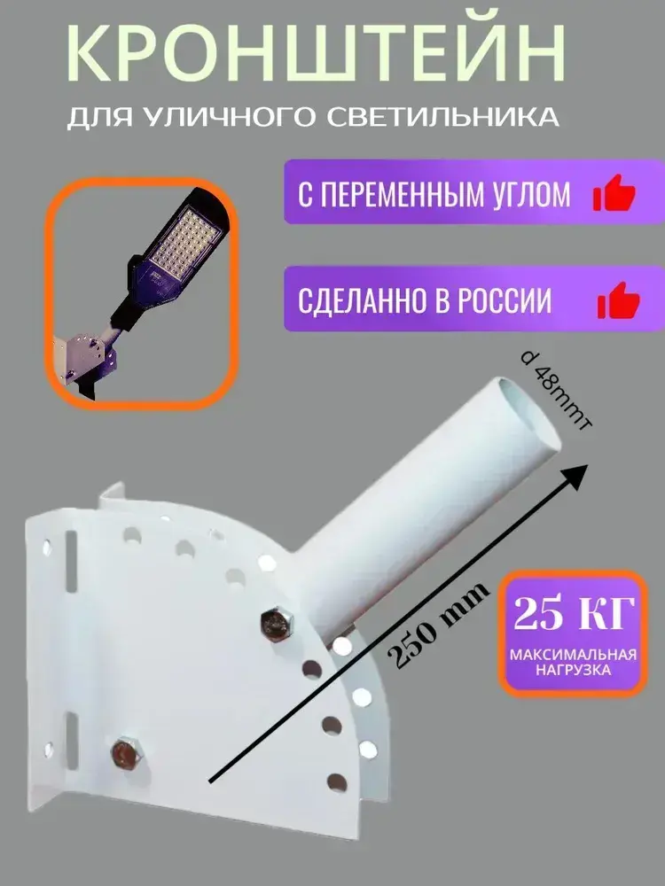 Кронштейн универсальный для уличного светильника с переменным углом 250х122х108