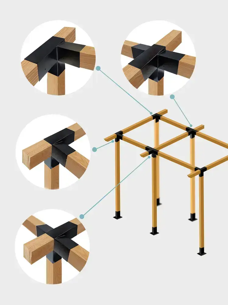 Кронштейны под уклоном 6 6 шт., коннектор летней toja беседки для бруса 100х100мм (Соединитель крепеж балки, пергола, тройник угловой деревянного столба)