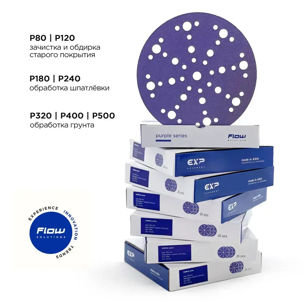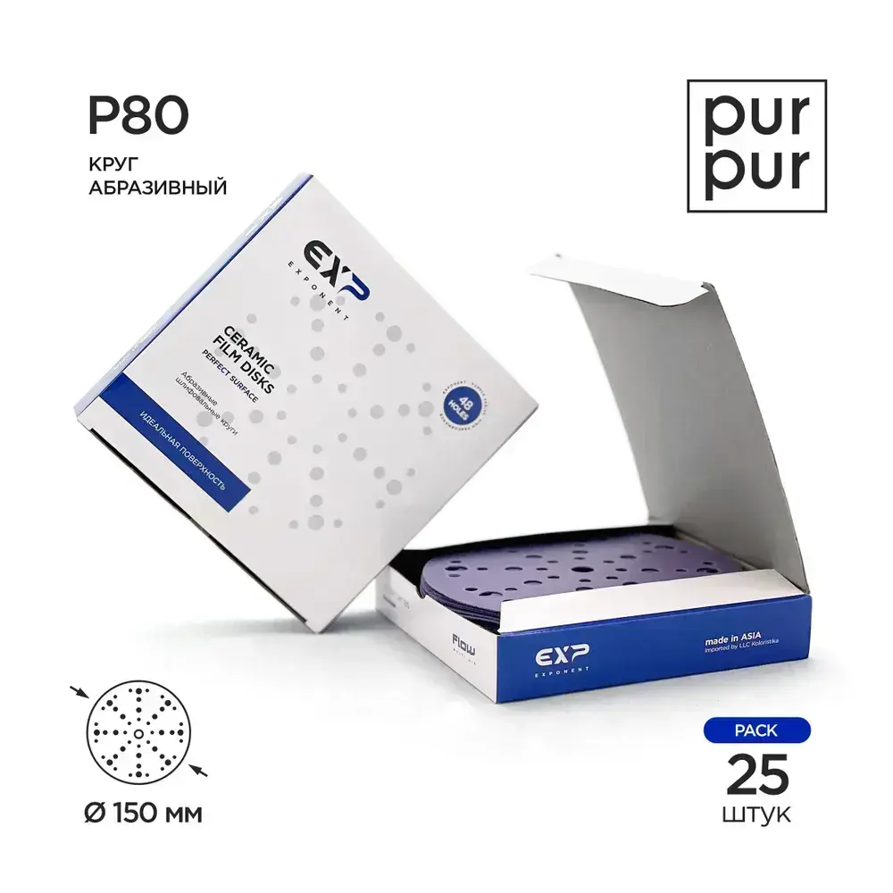 Круг абразивный, Purple Ceramic Film Р80, 48 отв, 150мм, (25 шт) Exp
