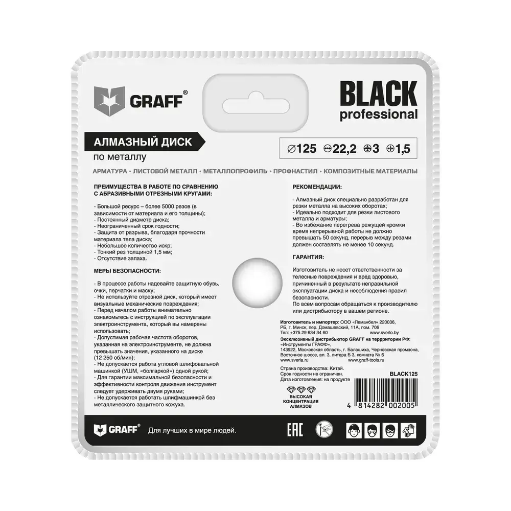 Круг отрезной алмазный, 125 мм Graff Black