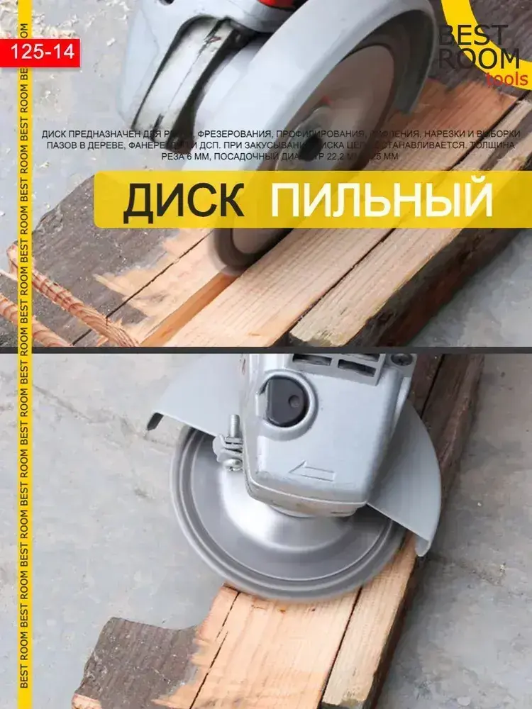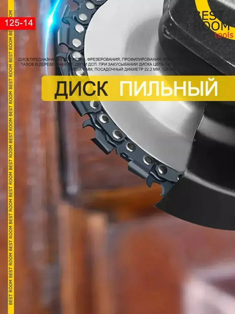 Круг отрезной, Диск пильный по дереву 125x22 / Насадка на болгарку цепная пила / Насадка на УШМ цепная пила