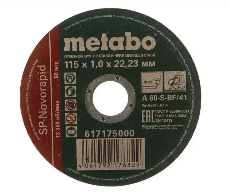 Круг отрезной по металлу 115*1.0 Metabo, 10 шт