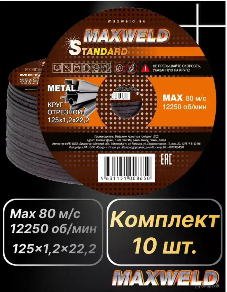 Круг отрезной по металлу 125 диск отрезной по металлу 125x1,2x22,2 (10шт)
