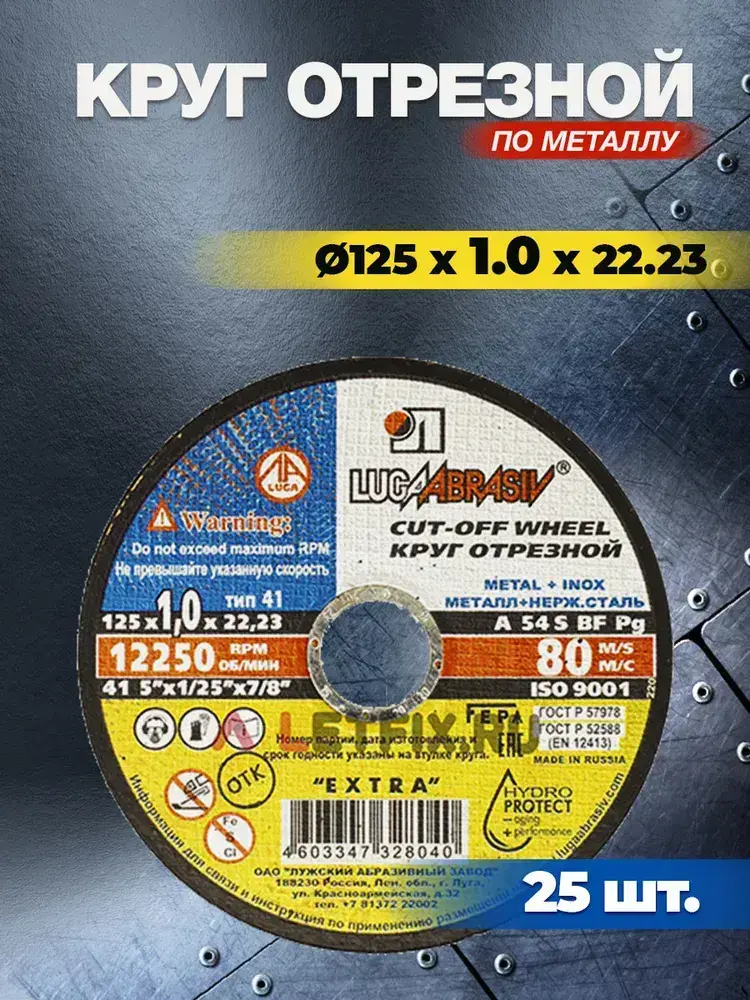Круг отрезной по металлу 125 х 1 х 22.23 ( 25 шт. ) Луга Абразив