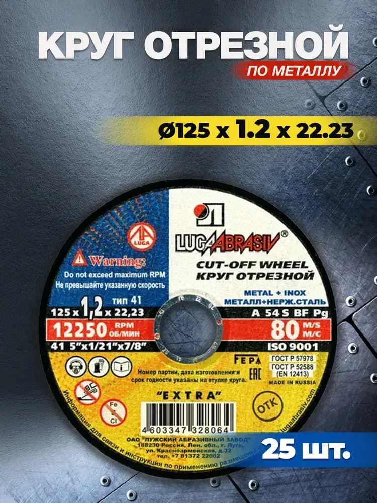 Круг отрезной по металлу 125х1.2х22,23 ( 25 шт ) Луга Абразив