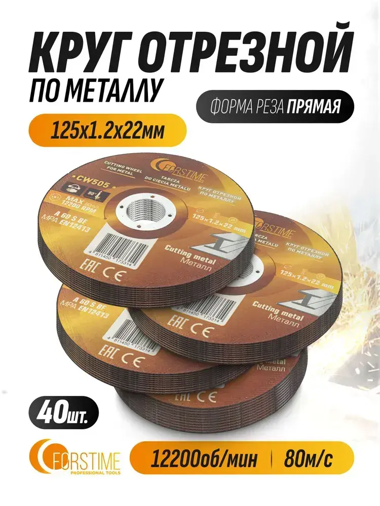 Круг отрезной по металлу 125x1.2x22 мм- 40 шт