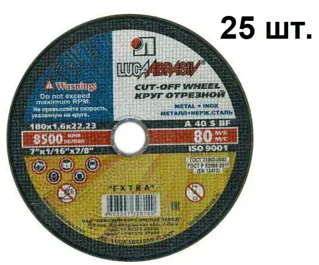 Круг отрезной по металлу 180х1,6х22 Луга - 25 шт.