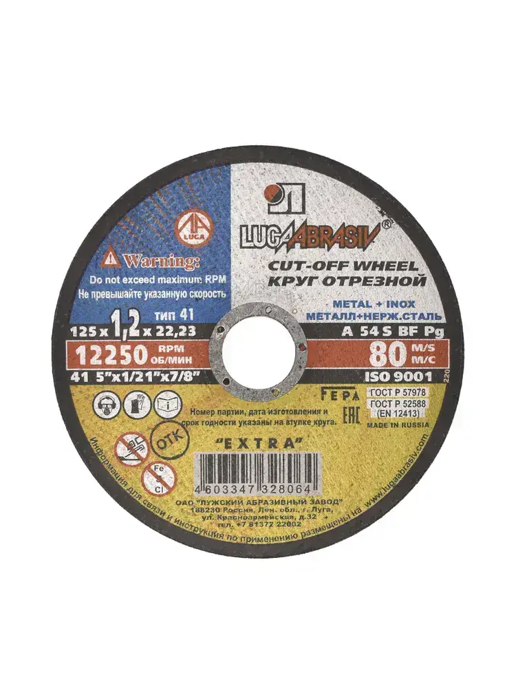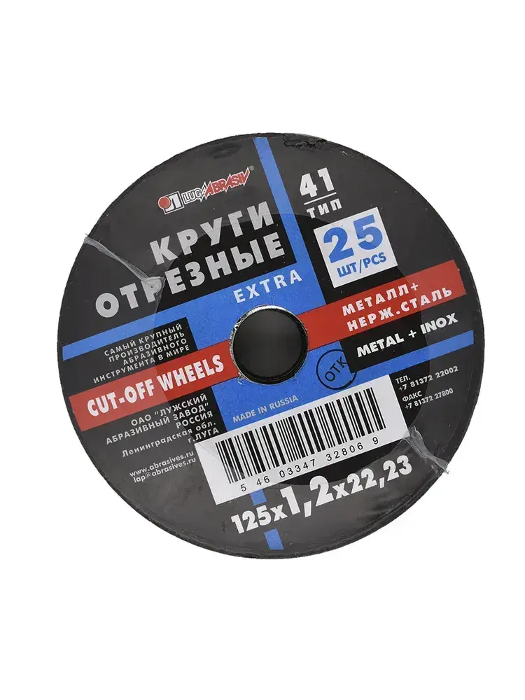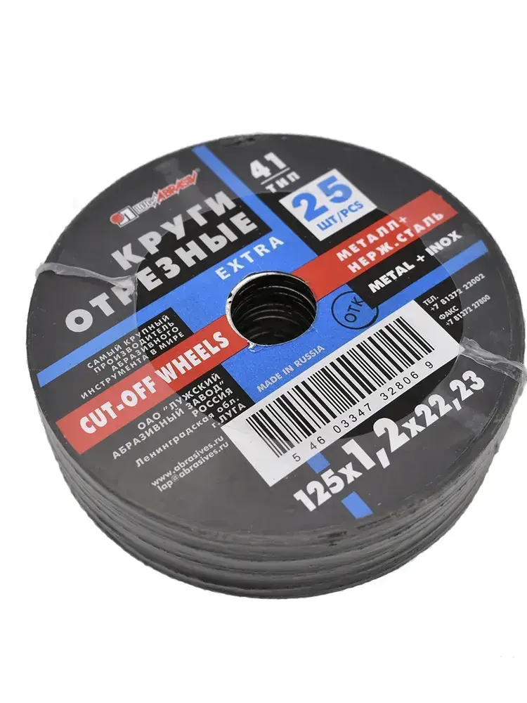 Круг отрезной по металлу. Луга Абразив 125 x 1,2 x 22, 25 шт.