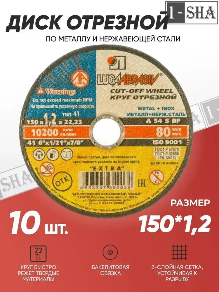Круг отрезной по металлу Луга Абразив 150х1.2, 10 шт.