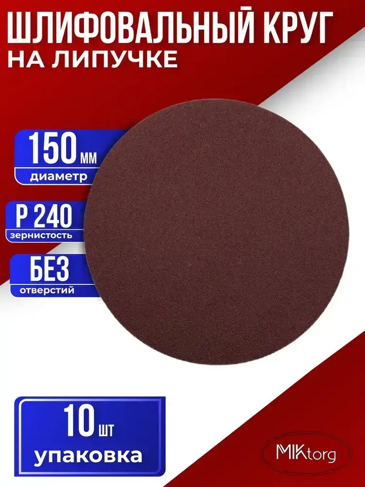 Круг шлифовальный D 150 мм P 240 на липучке 10 шт без отверстий